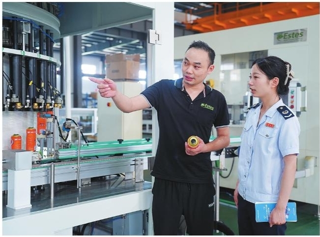 近日,慈溪市税务局组织“青税服务队”开展访企问需活动,为相关企业送上最新税收优惠政策。图为税务干部在宁波埃特世智能设备有限公司了解企业自主研发技术成果。
