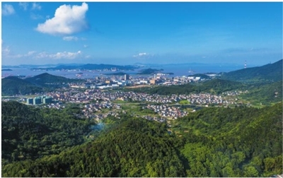 空中俯瞰舟山市定海区。 在“绿水青山就是金山银山”理念指引下,浙江生态建设久久为功,绿色成为发展最动人的色彩。浙江省域控断面优良水质比例达到97.6%,近岸海域水质优良率不断创造历史最好水平;空气质量在全国重点区域达标,省域森林覆盖率达到61.15%。山更绿、水更清、天更蓝、地更净,浙江生态持续向好,逐步探索出一条经济转型升级、资源高效利用、环境持续改善、城乡均衡和谐的绿色高质量发展之路。 ■新华社发