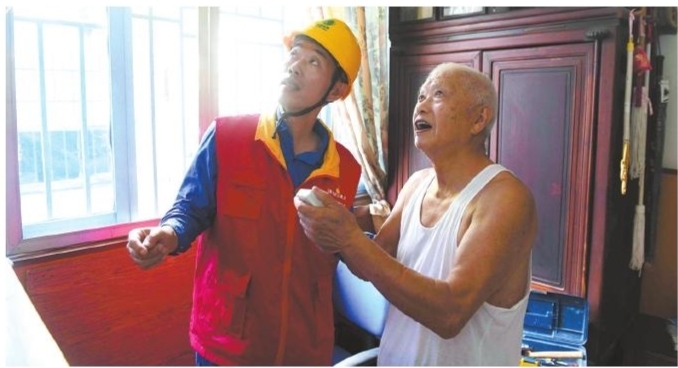 “可以啊!”胡群丰二话不说,拎着工具箱和梯子,熟门熟路地来到了应阿姨家。“孩子们工作都很忙,电灯破了我也不知道怎么处理。”应阿姨面露难色。