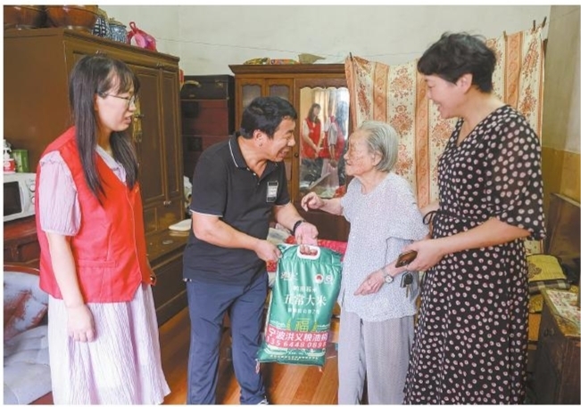 昨天,在慈溪开粮油食品批发店的吉林省通榆县流动党员王洪义,向宗汉街道漾山村的低保户、低保边缘户及90岁以上老年人送去100袋五常大米,感谢该村党总支和村民在他困难时候的帮扶,让他感受到第二故乡的温暖。