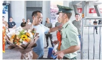 去时锣鼓喧天,归来夹道相迎。近日,秋季退役士兵集中返乡,坎墩街道退役军人服务站协同“绿马甲”老兵志愿服务队、村干部、退役军人家属到余姚北站迎接退役士兵,欢迎他们“回家”。■摄影 全媒体记者 戎志虎 通讯员 金云飞