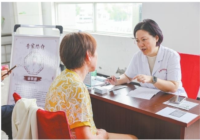 9月16日,掌起镇乡贤、上海市中医医院副院长宓轶群率该院10名各科专家组成的团队在古窑浦村开展义诊,让村民在家门口就能问诊名医。 ■摄影 全媒体记者 蒋亚军 通讯员 王雪枫
