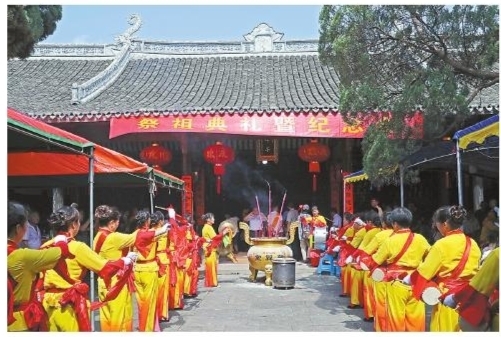 本报讯 人逢喜事精神爽,月到中秋分外明。昨天是中秋佳节,在横河镇孙家境村孙境宗祠内,来自全国各地的孙氏宗亲和当地村民齐聚在此,以赴家宴、看大戏的方式欢庆中秋、国庆“双节”的到来,抒发爱国、爱家情。