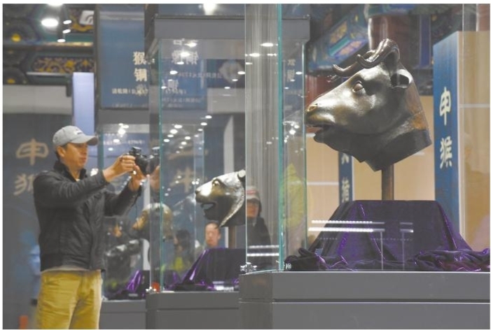 10月20日,观众在“五首重聚·故园新语”圆明园兽首铜像特别展览上拍摄。