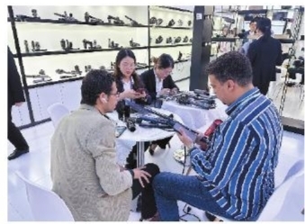 日前,第134届中国进出口商品交易会在广州开幕。慈溪企业展位人头攒动,合作洽谈者络绎不绝。图为现场的参展企业人员正在与外商开展洽谈。■摄影 全媒体记者 景锦