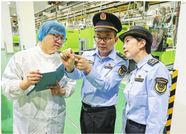 为普及标准化知识,增强标准化意识,近日,市市场监管局组织开展标准化工作精准入企活动,帮助企业标准化相关工作人员提升业务水平。图为市场监管工作人员为新海科技集团提供标准化工作辅导服务。 ■摄影 全媒体记者 蒋亚军 通讯员 胡莹