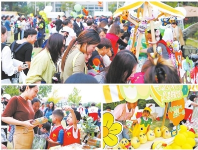 近日,一场“丰收的秋天”主题公益义卖活动在市早期教育中心举行。据悉,此次义卖筹集到爱心款共计2.7万余元,将捐赠给结对的四川凉山州布拖县实验幼儿园。图为义卖现场。 ■摄影 全媒体记者 王烨江