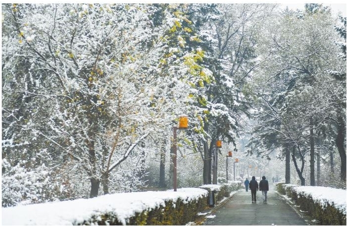 当日,吉林省长春市迎来今年秋冬季的首场降雪。