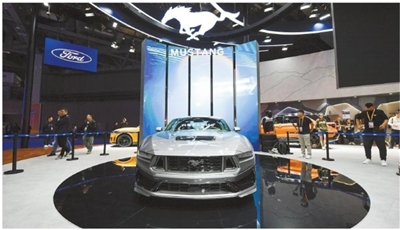 11月6日在第六届进博会汽车展区福特汽车展台拍摄的Mustang Dark Horse跑车。 第六届进博会汽车展区以“共创移动出行美好未来”为主题,展示一批国际先进汽车及衍生产品、技术、文化理念。 ■新华社发