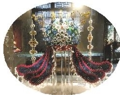 “为完成这顶凤冠,从构思到最终完工,总历时近三年,耗费了大量心血。”胡亮亮说,返回慈溪后,他们查阅了大量文献资料,再细细搜寻网上有关“六龙三凤冠”的精细图,并四处寻找制作凤冠的各种材料。“上面的六条龙,是铜镀金用累丝工艺制作的,凤凰翅膀、花朵等蓝色部分采用染色的鹅毛以点翠工艺制作而成,凤冠上镶嵌了大量红蓝宝石和珍珠。“这顶凤冠,光珍珠就用了四五千颗。”胡亮亮说,由于制作工艺复杂,从制胎到全部完工,又花了半年多时间。