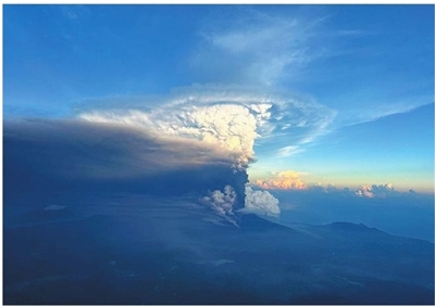 这是11月21日在巴布亚新几内亚拍摄的乌拉文火山喷发的景象(航拍照片)。 南太平洋岛国巴布亚新几内亚的乌拉文火山20日剧烈喷发,火山灰冲上1.5万米以上高空。 ■新华社发
