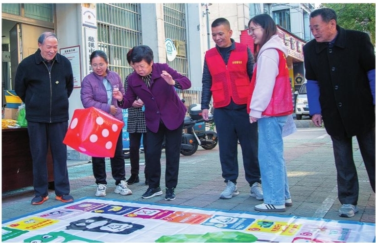 日前,白沙路街道白河社区党群服务中心外开展了一场垃圾分类宣传,通过参与趣味游戏,让垃圾分类理念深入人心。