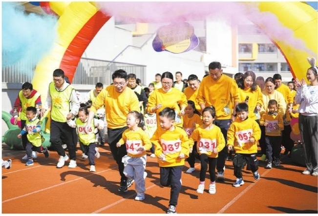 日前,华东师范大学慈溪实验幼儿园的萌娃与家长们热情满满、精神抖擞地参加了亲子迷你马拉松。通过与父母的合作,体验到拼搏和坚持的乐趣,感受爱与坚持的意义。 ■摄影 全媒体记者 蒋亚军 通讯员 韩幼萍