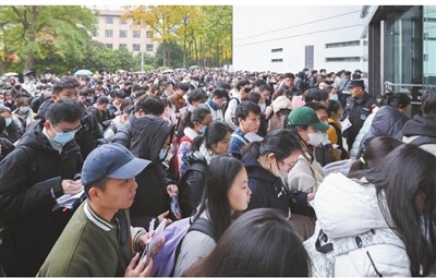 11月26日,在南京林业大学考点,考生进场准备参加考试。当日,中央机关及其直属机构2024年度考试录用公务员公共科目笔试在全国各考区统一举行。■新华社发