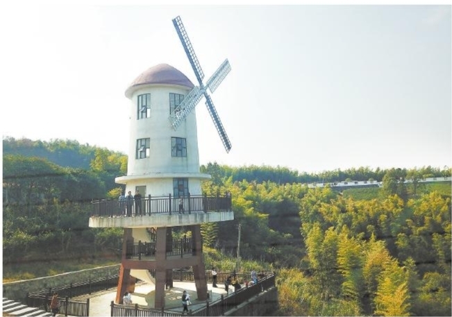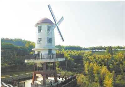 近日,不少游客趁着晴好天气来到岗墩村的大风车景点打卡游玩,饱览慈溪第一高山村的秀美景色。 ■摄影 全媒体记者 王烨江