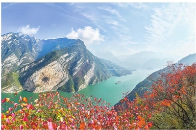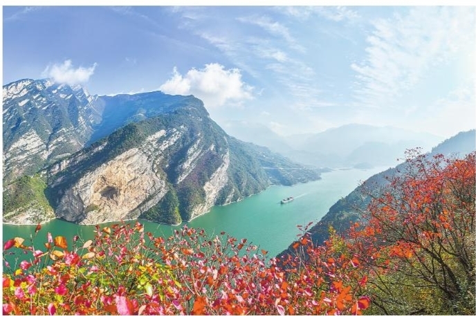 12月2日,船舶行驶在湖北省宜昌市秭归县屈原镇兵书宝剑峡水域(无人机照片)。