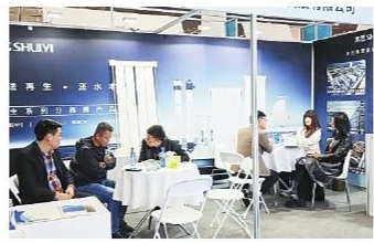 日前,在2023年水处理技术与装备展览会上,宁波水艺膜科技发展有限公司以全尺度水处理分离膜为代表的多行业全球化定制化产品,以及各类水处理配套应用解决方案亮相此次展会,获得多家头部企业的认可。图为客户在咨询水艺膜技术。 ■摄影 全媒体记者 张金科