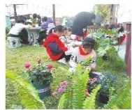 慈晓客户端慈圈“圈友”木石天山:把美丽留住,龙南小学学生在校园一角写生。