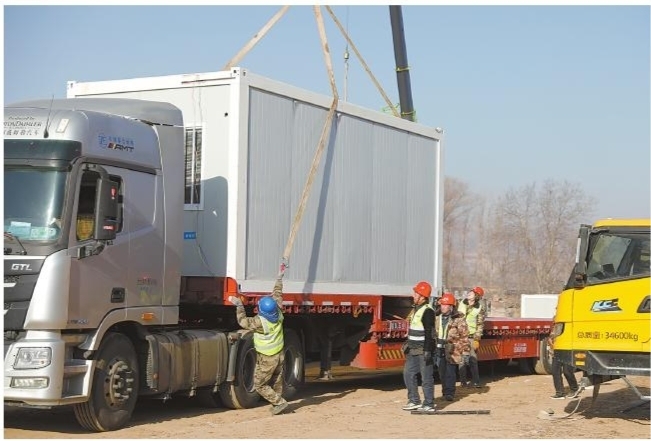 随着积石山县抗震救灾进入到受灾群众生活安置阶段,各路建设援助力量开足马力,组织人手加快对受灾严重的积石山县大河家镇、刘集乡、柳沟乡、石塬镇等乡镇的安置点进行路面和场地平整,加快进行活动板房运输、安装和通电工作,同步加快卫生间和水房等配套设施建设。