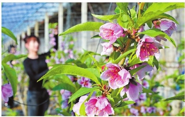 12月26日,河北省乐亭县新寨镇的农民为大棚桃树疏花。近日,河北省乐亭县的大棚鲜桃进入盛花期,农民们抢抓农时进行疏花、授粉,一派繁忙景象。近年来,乐亭县引导农民发展大棚桃种植,促进农民增收,助力乡村振兴。据介绍,目前该县大棚桃种植面积达2.7万亩,年产鲜桃超5万吨。■新华社发