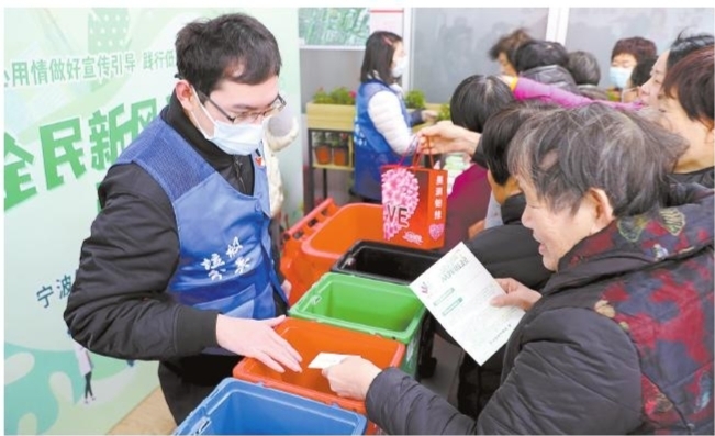日前,宗汉街道曙光社区向居民分发生活垃圾分类、生态环境保护等宣传资料,并开展有害垃圾换绿植活动,鼓励社区居民坚持绿色生态优先理念,做好身边的环境保护。 ■摄影 全媒体记者 王烨江 通讯员 陆浩明