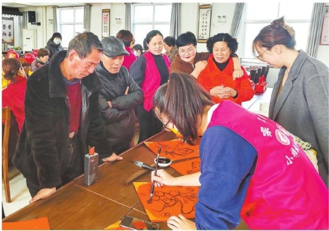 近日,宗汉街道计生协会、老龄办携宗汉姐妹花志愿服务队在高王村文化礼堂小棉袄暖心家园开展“迎春送福”茶话会,为街道部分计生特殊家庭送上新春祝福和慰问。 ■摄影 全媒体记者 蒋亚军 通讯员 潘美琴