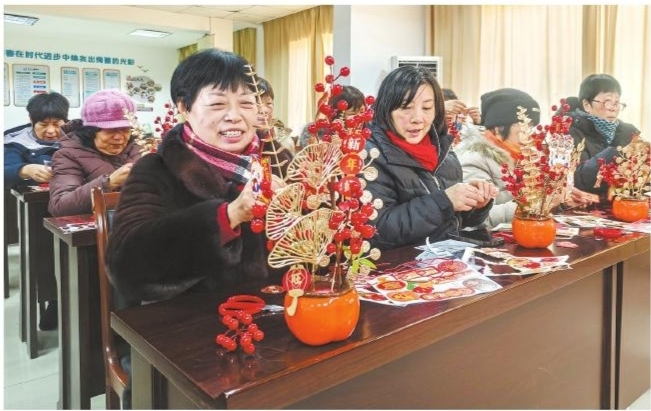 近日,浒山街道阳明社区妇联开展“柿柿如意传祝福,欢欢喜喜迎新年”盆栽摆件制作活动,居民在社区妇联主席的指导下制作“福桶花”柿子盆栽,寓意“柿柿”如意,增添节日氛围。 ■摄影 全媒体记者 蒋亚军 通讯员 罗雁