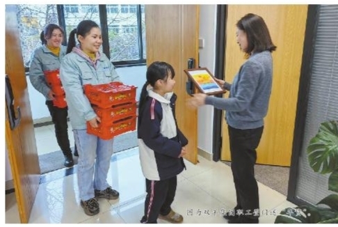 图为双羊集团职工登门送“年货”。