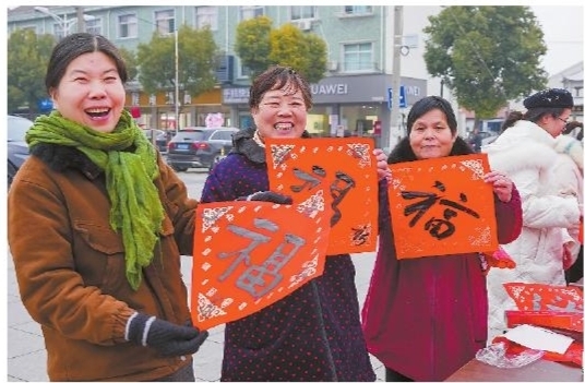 日前,长河镇书画协会的会员们在华润万家超市门口为当地群众写春联、送福字,喜气洋洋迎接春节的到来。据了解,这是该协会连续15年在春节前夕送祝福。■摄影 全媒体记者 景锦 通讯员 丁洋 谢燕彬