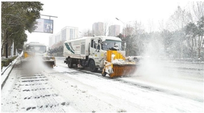 2月21日,除雪车在河南省济源市济源大道上作业。 近日,针对降温降雪天气,各地采取多项措施积极应对。 ■新华社发