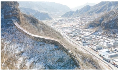 这是2月25日拍摄的长峪城村“旧城”城墙(无人机照片)。 当日,位于北京市昌平区流村镇的长峪城村雪后初霁,别有韵味。长峪城村建于明代,拥有瓮城、城墙、寺庙、古民居、社戏等历史文化资源,被评为“中国传统村落”。 ■新华社发