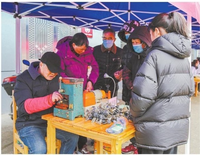 近日,浒山街道金南社区联合共建单位、党员开展健康义诊、磨刀、配钥匙、理发、群治分积分兑换等生活便民志愿服务,以实际行动书写新时代雷锋故事,为现代社区创建贡献力量。 ■摄影 全媒体记者 蒋亚军 通讯员 胡淑南