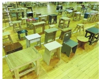 走进位于学校体育馆的板凳展,各式各样的小板凳使人眼花缭乱。从材料来看,木凳居多,还有小部分则以硬纸板、铁圈等为主要材料;从造型来看,多为方凳、长条凳,其间穿插摆放着不少造型别致的小板凳,有的在板凳的基础上增加了靠背、坐垫等舒适性设计,有的用龙年元素彩绘、元素周期表等在板凳表面进行装饰……此次板凳展共展出1200多条板凳,均出自学校学生之手,是他们在寒假期间的劳动作业成果。