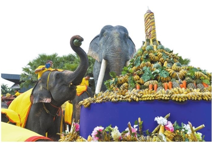 当日是泰国一年一度的大象日,芭堤雅东芭乐园在这一天为大象奉上了丰盛的水果自助餐。