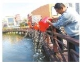 慈晓客户端慈圈“圈友”彼得潘的姐姐:“宗汉街道五水共治公园内,数以万计的鲢鱼、鳙鱼、鳊鱼被投放到漾山路江内,为漾山路江水域再添生机与活力。
