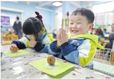 春分,是二十四节气之一。近日,观海卫镇镇东幼儿园的孩子们在“赏春”“探春”“玩春”“食春”的过程中,尽情表达着自己对春天的喜爱。不仅增进了对春分节气的认识,感触了大自然的微妙变化,也激发了对传统文化的浓厚兴趣。图为孩子们在了解春分“立蛋”民俗。 ■摄影 全媒体记者 陆铭铭 通讯员 徐洪玲