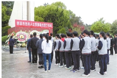 昨天上午,市委老干部局、市委党研室、市关工委、市新四军历史研究会、市教育局关工委退教协会及西门初级中学师生代表在市革命烈士纪念碑开展“传承红色基因,弘扬先烈精神”清明祭英烈主题活动,表达对革命先烈的崇高敬意和无限哀思。 ■摄影 全媒体记者 王烨江 通讯员 方湘敏