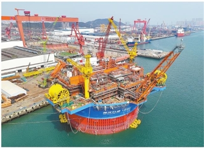 4月7日,“海洋石油122”浮式生产储卸油装置(FPSO)在海油工程青岛场地进行海上倾斜试验及调试(无人机照片)。 当日,由我国自主设计建造的亚洲首艘圆筒型“海上油气加工厂”——“海洋石油122”浮式生产储卸油装置(FPSO),在海油工程青岛场地进行海上倾斜试验及调试,为项目年内投产奠定基础。 “海洋石油122”被称为“超级能源碗”,最大排水量10万吨,最大储油量6万吨,可连续在海上运行15年不回坞。 ■新华社发