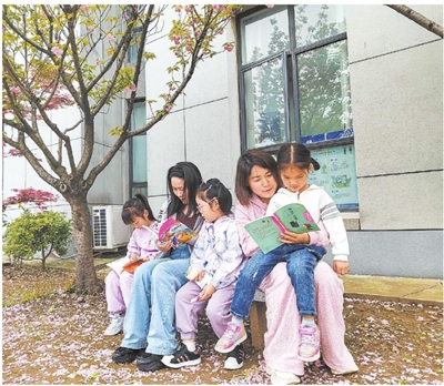 近日,宗汉街道星光社区的宁波志愿服务We站星光站图书“漂流站”早早迎来了不少“悦”读者。他们接上刚放学的孩子在We站借几本经典读物,和孩子一起坐在晚樱树下沐浴着春风享受亲子阅读的美好时光。 ■摄影 全媒体记者 蒋亚军 通讯员 潘美琴