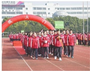 在十八岁成人仪式上,实高学子跨越成人纪念台,担负起对国家和民族的青春责任。