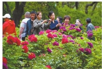 4月14日,人们在济南泉城公园内赏花。近日,山东省济南市的泉城公园春花盛开,吸引市民和游客前来赏花拍照。 ■新华社发