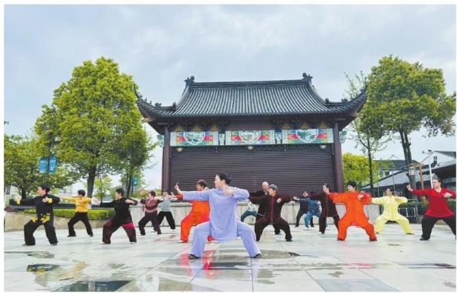 日前,白沙路街道西华头村开展“悦运动 越健康”太极健身活动,20余位太极拳爱好者齐聚村文化公园进行套路拳演示,伴随着悠扬的音乐,爱好者们动作刚柔并济、潇洒飘逸,于动静之中诠释了太极拳的独特魅力。 ■摄影 全媒体记者 陈佳玲 通讯员 余双迪