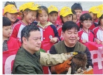近日,市野生动物保护协会联合相关部门在匡堰镇岗墩山顶开展“爱鸟周”科普宣传活动,向爱鸟人士以及学生群体宣传野保法规,呼吁大家爱鸟护鸟,共同推进生态文明建设,并将最近救助的国家二级保护动物蛇雕放归大自然。 ■摄影 全媒体记者 戎志虎 通讯员 施建庆