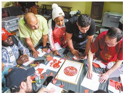 4月18日,在长沙非物质文化遗产馆,非遗传承人(右一)为留学生介绍剪纸技艺。当日,为迎接联合国中文日,中南大学国际教育学院、长沙市非物质文化遗产保护中心(长沙非物质文化遗产馆)联合推出“走近非遗-感知中国”文化体验活动,组织来自20多个国家的100多名留学生体验剪纸、面塑、棕编等多个中国传统“非遗”项目,让留学生近距离感受中国文化魅力,丰富国际中文教育形式。■新华社发