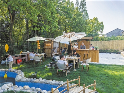 更多商业新业态融入了山林之中。位于子陵村的D2 Camp是一个城市与大山的交流平台,在这里,帐篷、篝火、露天电影好不自在,轻风吹过,带走繁忙;藏在深山的陌溪小院,历经改造后呈现出中国乡村小院之美,品茶、见山、听风、自在、放空;小隐茶野坐落在一片郁郁葱葱的山林之间,茶室内茶香阵阵,茶室外绿荫徐徐,充满着生机与活力。
