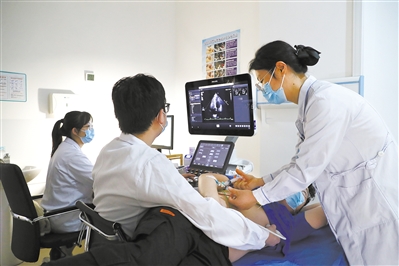 图为市第三人民医院医疗健康集团超声科医务人员正在为患者进行右心声学造影检查(“微气泡”显影)。据了解,该技术主要用于偏头痛、原因不明的缺血性脑卒中、一过性头晕、晕厥患者等病因检查,具有微创、无电离辐射、安全有效等特点,为临床诊疗提供有效帮助。 ■摄影 全媒体记者 王烨江 通讯员 包自力
