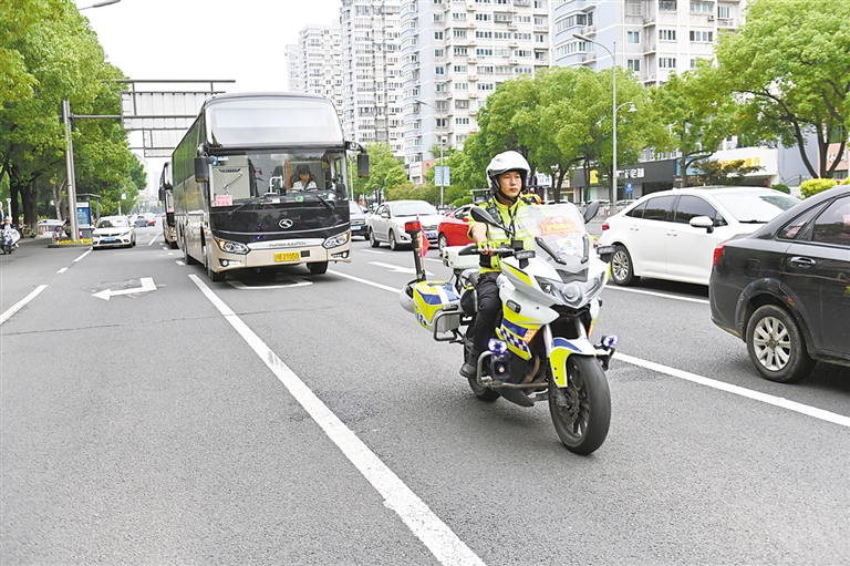 集结完毕,准时出发。今年高考期间,交警铁骑首次为送考车队全程开道护送,确保考生平安到达考点。当天上午7:55,铁骑在前开道,从城区某酒店出发,引导两辆载有观城高中考生的大巴,一路驶向三山高中考点。