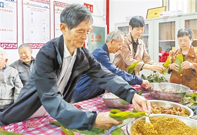 近日,宗汉街道桃园江社区养老日间照料中心联合社区退役军人服务站开展“粽情端午,共享安康”端午包粽子活动,共庆端午佳节。