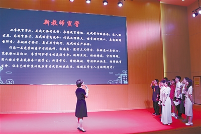 2023年教师节新教师入职宣誓仪式,由慈溪市骨干教师张颖领誓。