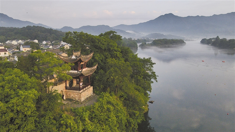 端午假期,位于安徽省宣城市泾县的桃花潭风景区晨景迷人。桃花潭南临黄山、西接九华山,与太平湖相连,因李白的《赠汪伦》而闻名。